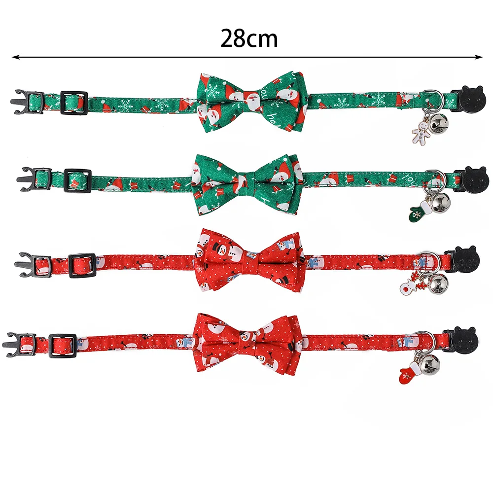 Купить Cat Collar Christmas New Year Safety Buckle Breakaway with Cute Bow Tie and Bell Accessory for Kitten Adjustable Cats Pets за 200рублей