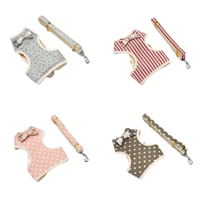 Купить Cat Dog bowknot harness mesh Puppy Walking Lead Leash Anti-break cat Vest For Small Medium Dog Cat Collar pet Accessories за 250рублей