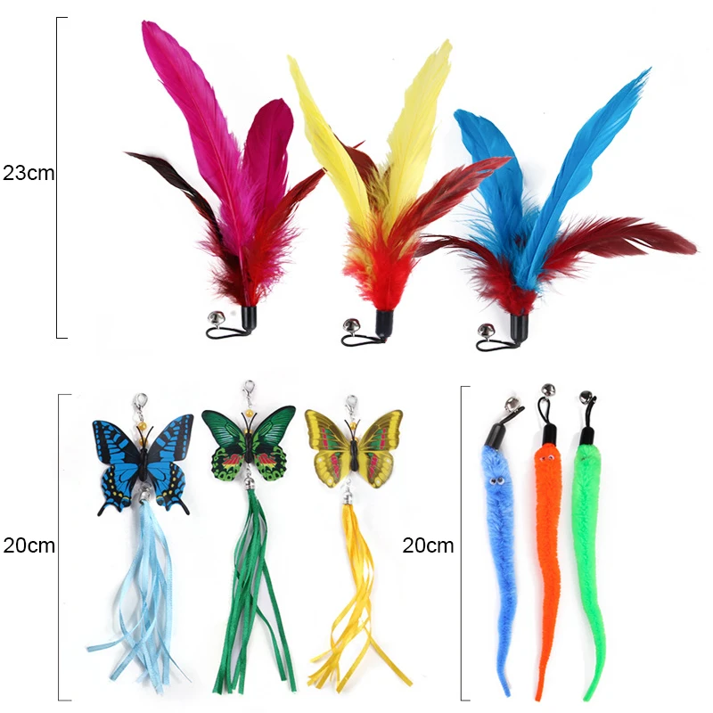 Купить Cat Feather Toy Sets Fishing Rod Tease Cat Stick Butterfly Replacement Toy for Kitten Cat Having Fun Exercise Playing Toys за 400рублей