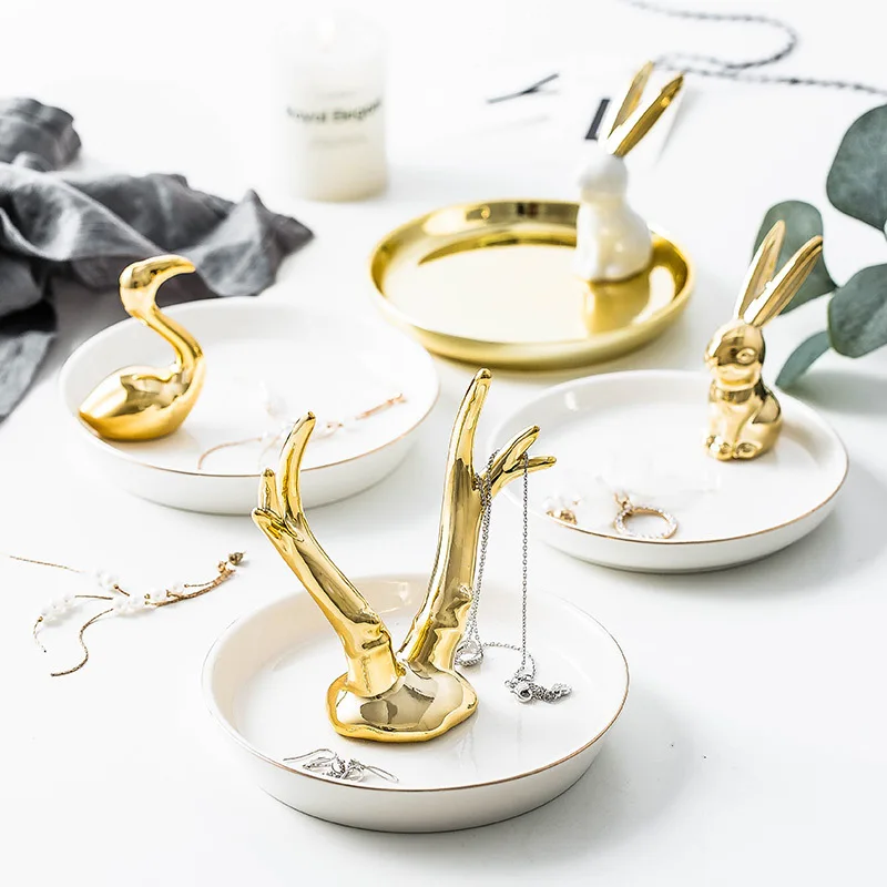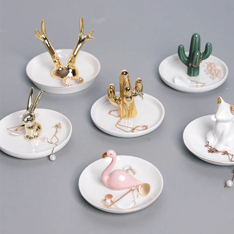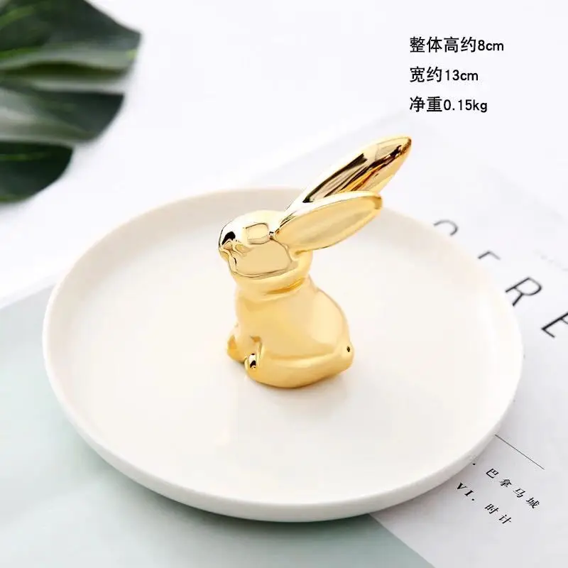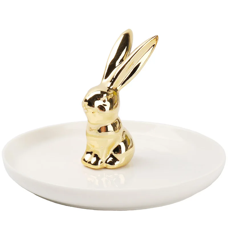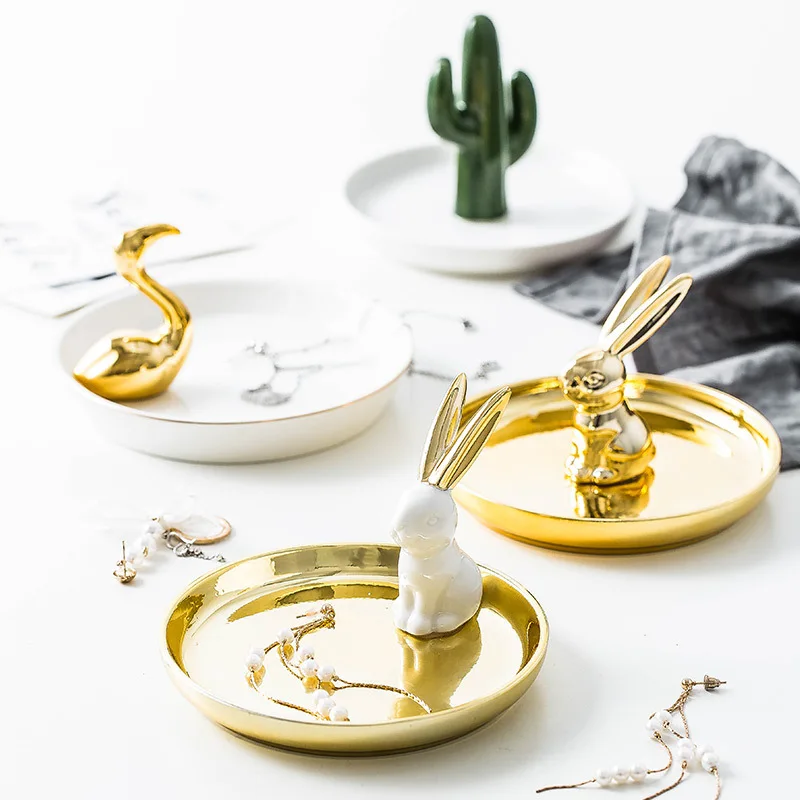 Купить Ceramic Jewelry Desktop Plate Golden Rabbit Animal Storage Tray Cactus Ornaments Organizer Display Plate Gold Trays Decorative за 900рублей