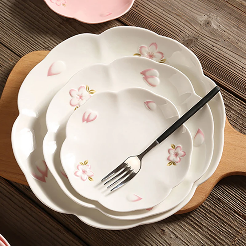Купить Ceramic Plate Hand Painted Embossed Cherry Blossoms Home Dining Plate For Food Steak Fruit Dessert Disc Kitchen Tableware за 1150рублей