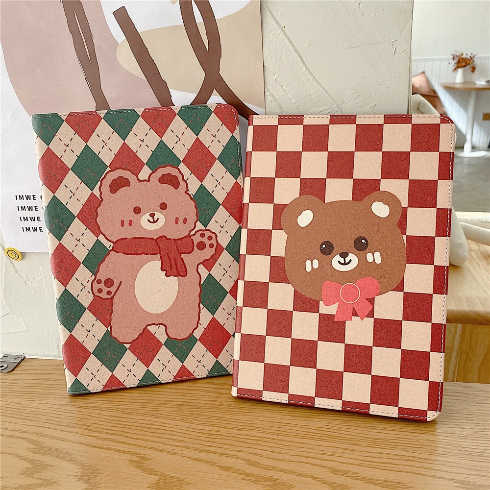 Купить Checkerboard Bear Tablet for iPad Air 4 IPad Pro 2021 Cover iPad 10.5 iPad 7 8 9 Th iPad Mini 6 5 4 3 2 iPad 10Th 2022 за 850рублей