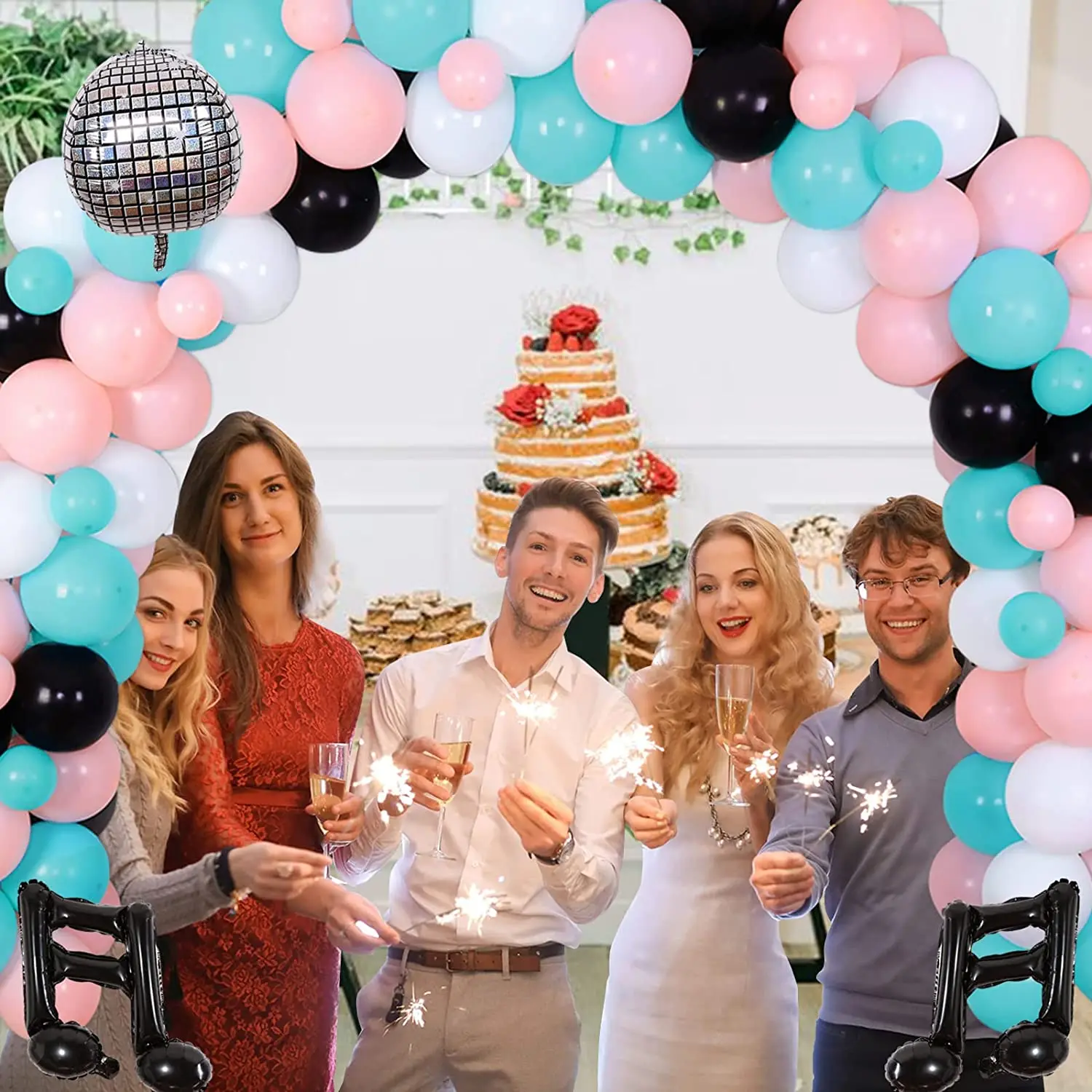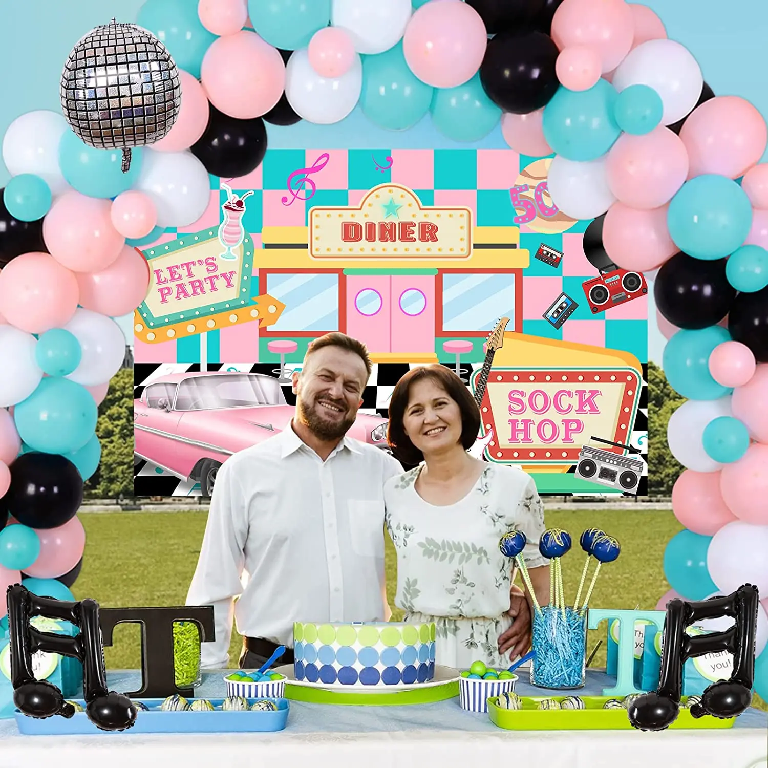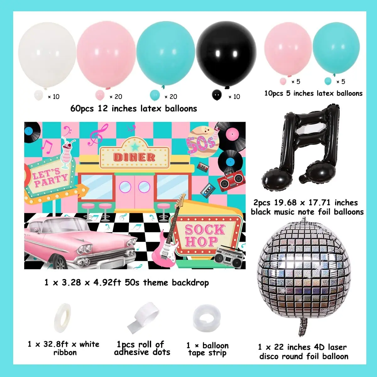 Купить Cheereveal 50's Retro Disco Hip Hop Party Decorations Pink Blue Balloon Garland Kit Music Note Foil Balloons Sock Hop Backdrop за 950рублей