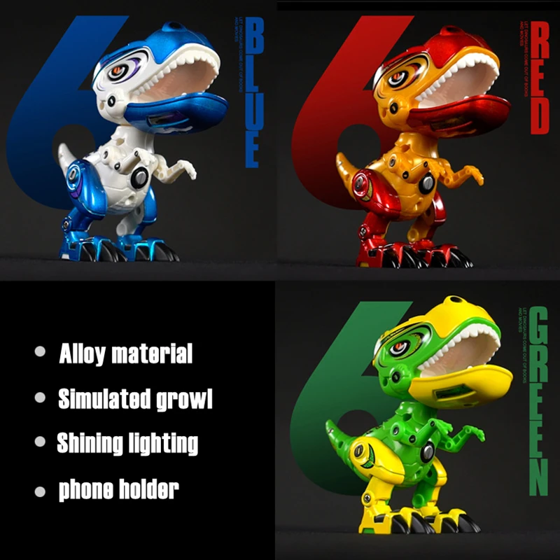 Купить Children's Electric Alloy Sound Light Dinosaur Deformed Robot Movable Joints Phone Holder Simulation Tyrannosaurus kids Toy за 700рублей