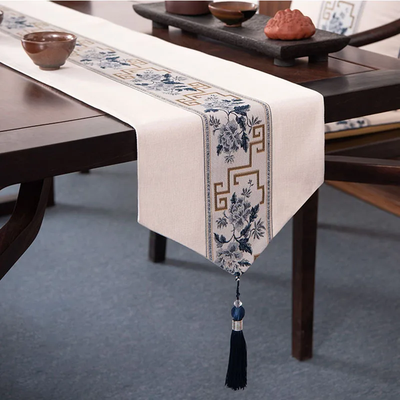 Купить Chinese Style Table Runner Luxury Cotton Linen Jacquard Table Runners Decorative Bed Runner Table Flag Living Room Hotel за 700рублей