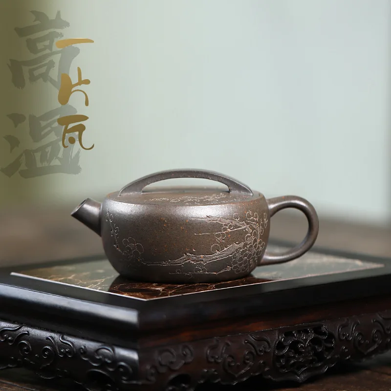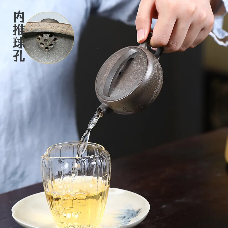 Купить Chinese Yixing Large Diameter High-end Purple Clay Teapot Famous Handmade Tea Pot Raw ore Mud Kettle Zisha Kungfu Tea Set 130ml за 3700рублей