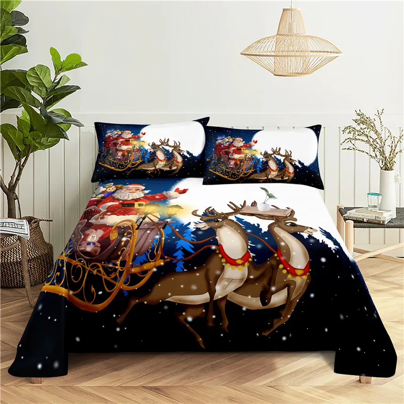 Купить Christmas 0.9/1.2/1.5/1.8/2.0m Digital Printing Polyester Bed Flat Sheet With Pillowcase Print Bedding Set за 750рублей