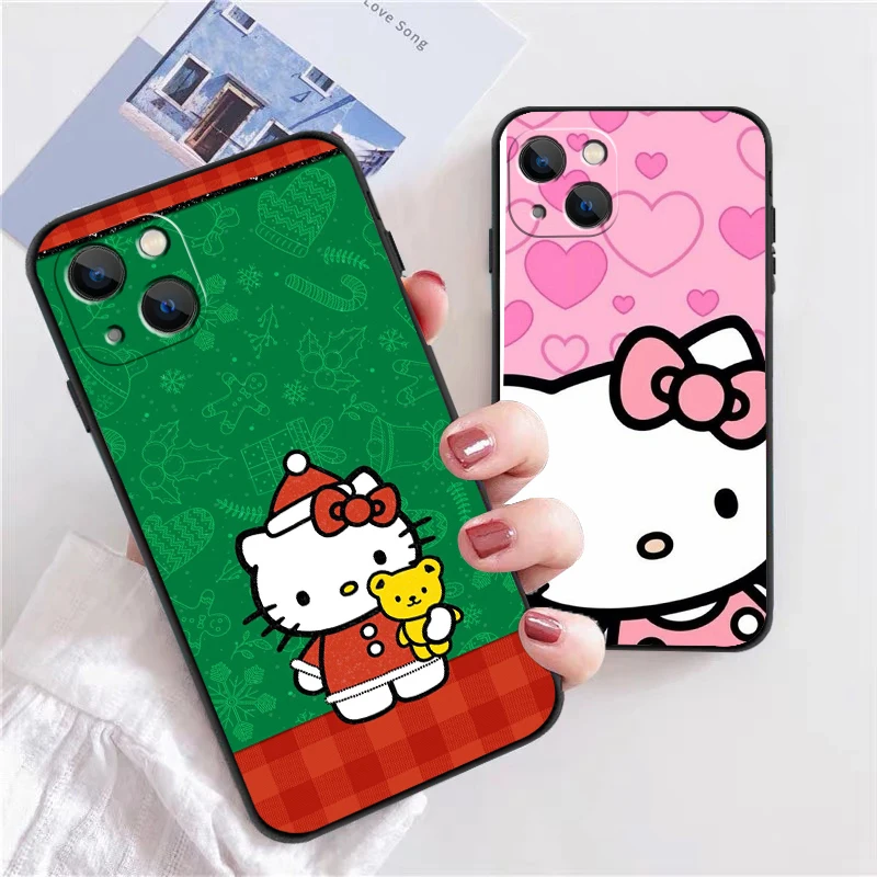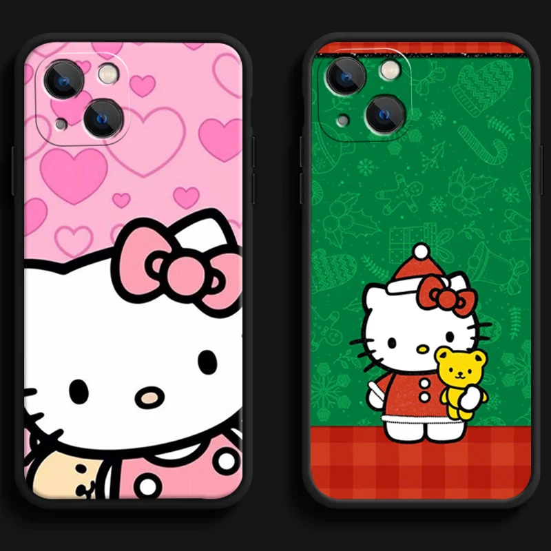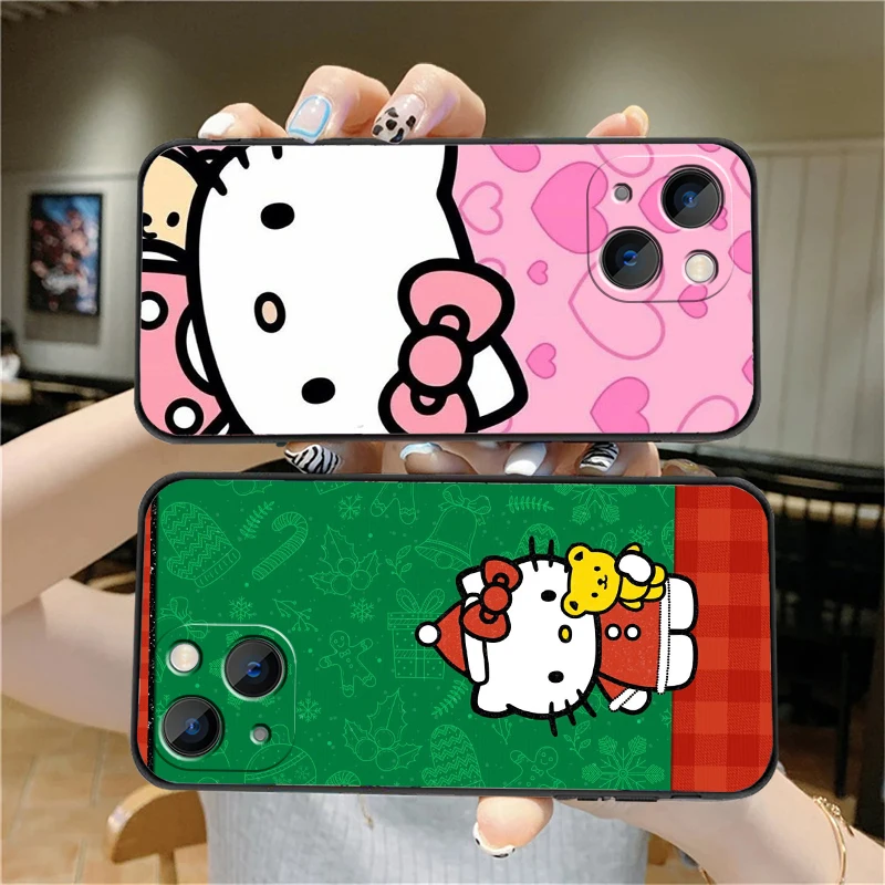 Купить Christmas Hello Kitty Phone Cases For iPhone 14 11 12 Pro MAX 6S 7 8 Plus XS MAX 12 13 Mini X XR SE 2020 Carcasa Soft TPU Coque за 300рублей