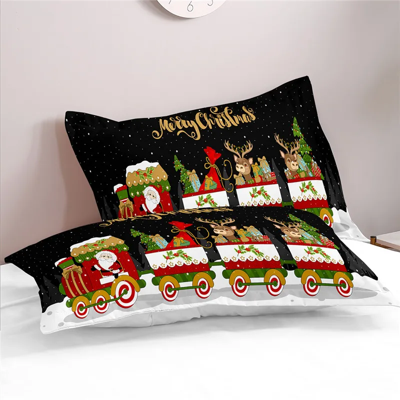 Купить Christmas Train 0.9/1.2/1.5/1.8/2.0m Digital Printing Polyester Bed Flat Sheet With Pillowcase Print Bedding Set за 750рублей