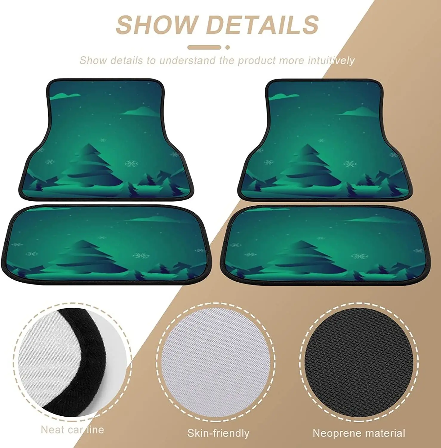 Купить Christmas Tree Blue Green Car Mats Front&Rear 4-Piece Full Set Carpet Car SUV Truck Floor Mats with Non Slip Back за 1000рублей