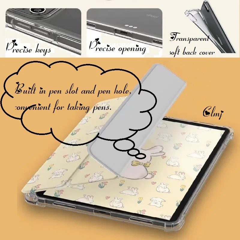 Купить Clmj Cute Rabbit Flower iPad Case Cover Cartoon Animals Apple Tablet Case For iPad 6th 7th 8th 9th Air 3 4 5 Mini 5 6 Pro 3 4 5 за 700рублей