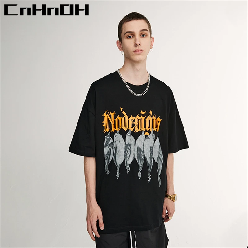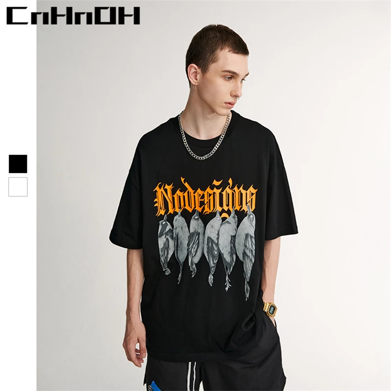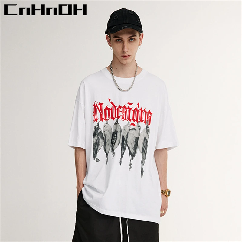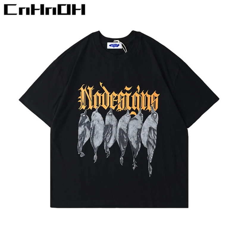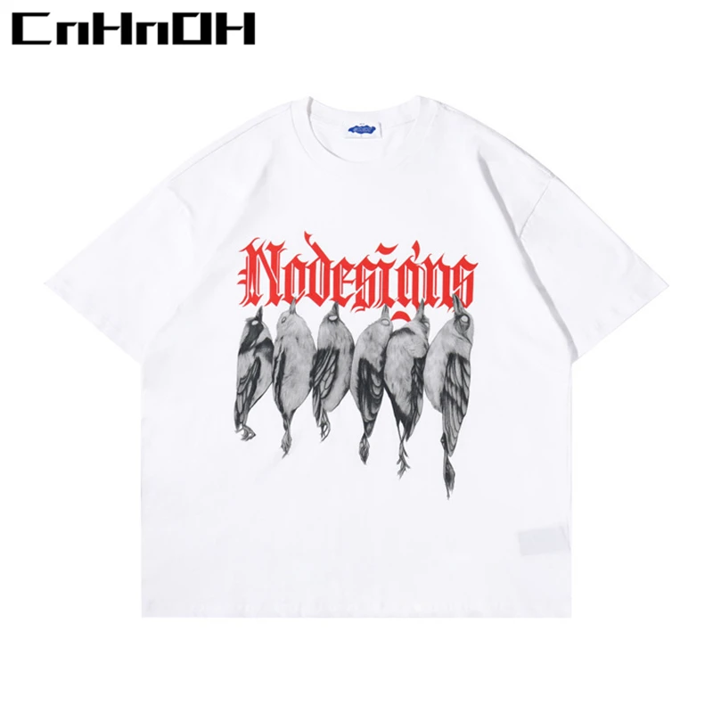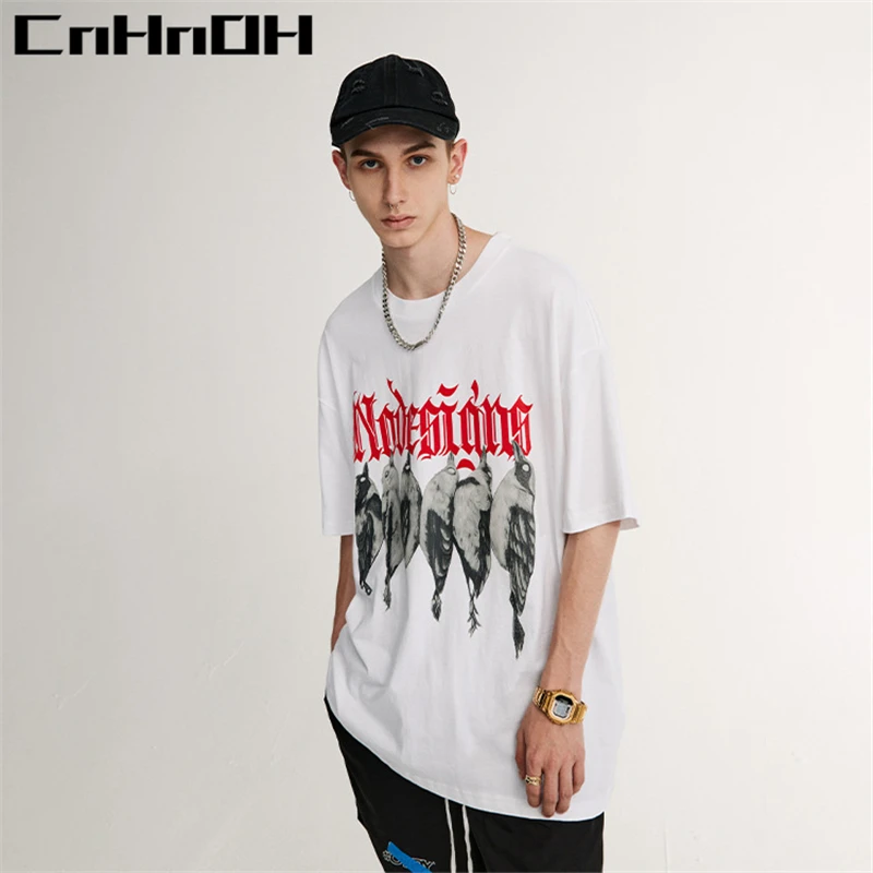 Купить CnHnOH Spring And Summer New Street Fashion Brand Chic Birds With English Casual Loose Short-Sleeved T-Shirt Women C021 за 450рублей