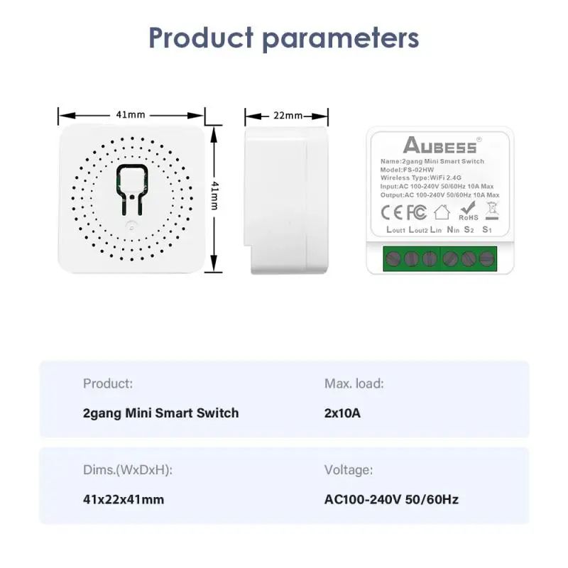 Купить CoRui Mini Tuya Smart 2 Gang WIFI Switch DIY Switch Module APP Control Work With Alexa And Google Home Support Two Way Switch за 400рублей