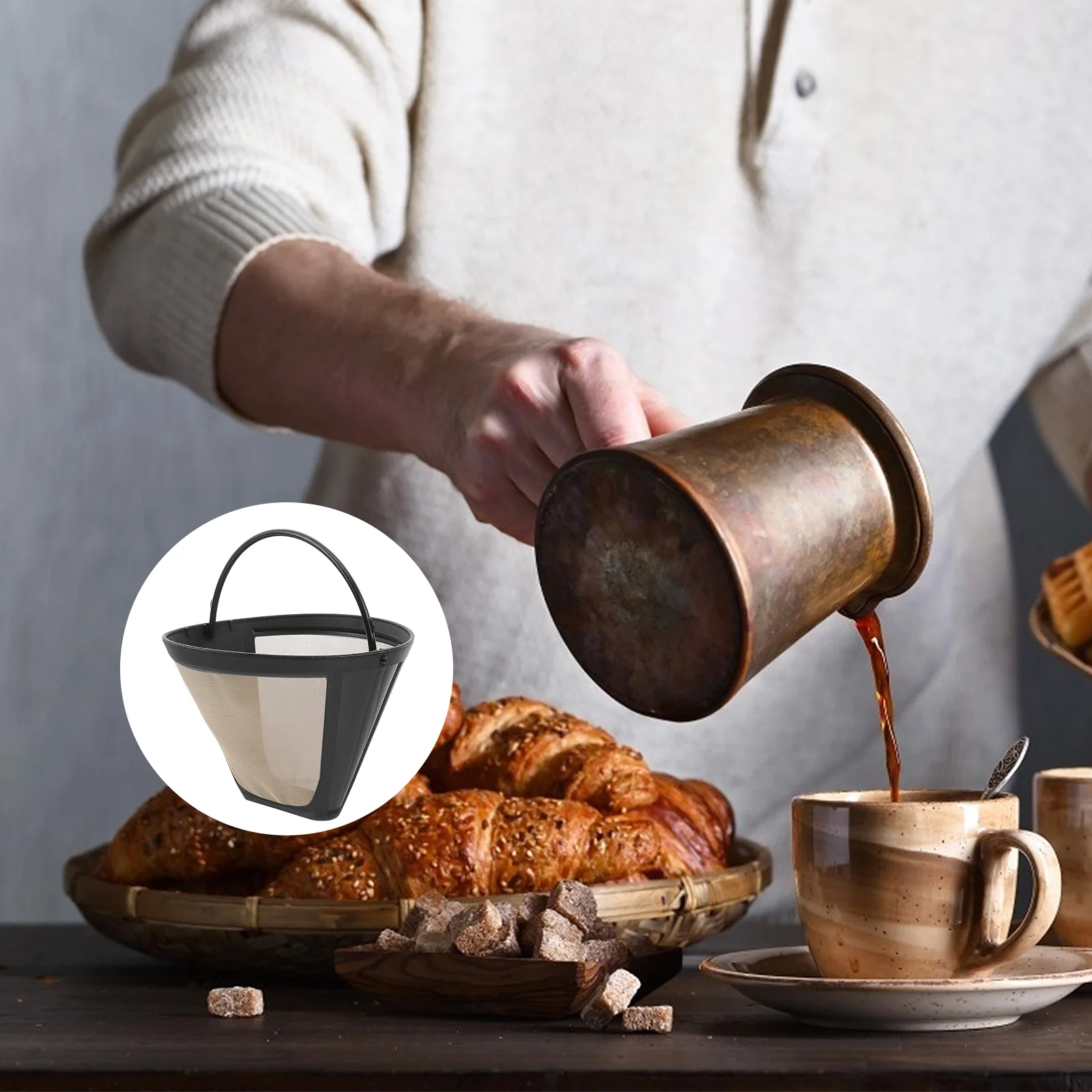 Купить Coffee Filter Metal Mesh Basket Permanent Reusable Machine Replacement Replacment Stainless Steel Shape Cone Pods Washable за 350рублей
