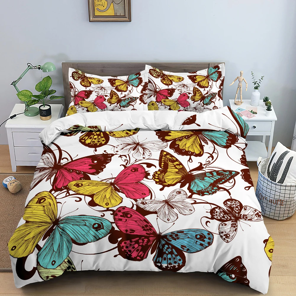 Купить Color Butterfly Bedding Set 3D Duvet Cover Set Microfiber Quilt Cover With Pillowcases King Size Comforter Cover Soft Bedclothes за 1200рублей