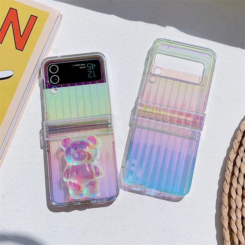 Купить Colorful Laser Cartoon Bear Phone Case for Samsung Galaxy Z Flip 3 Z Flip 4 Hard PC Back Cover for ZFlip3 ZFlip4 Case Shell за 350рублей