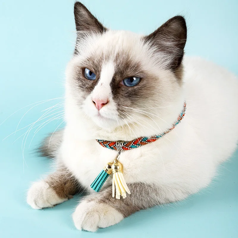 Купить Colorful Woven Pet Cat Collar Korean Version of Velvet Bright Silk Hand-woven Pet Collar Cat Collar Kitten Collar for Small Cats за 200рублей