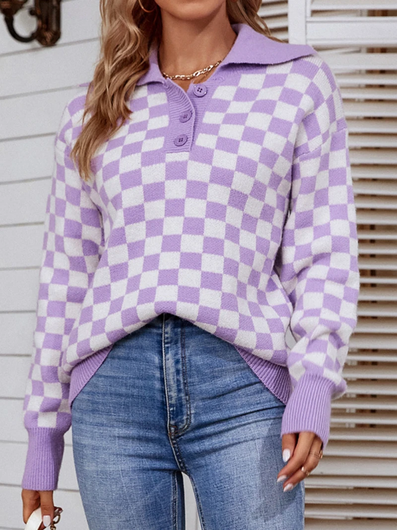 Купить Contrast Check POLO Neck Sweater for Women In Autumn and Winter 2022 за 2050рублей