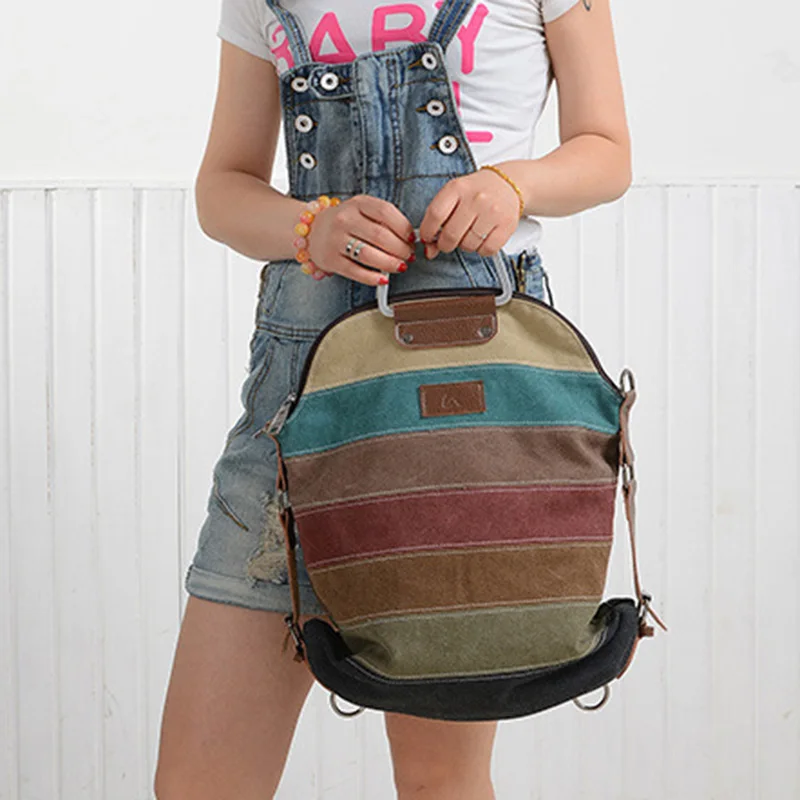 Купить Contrast Color Shoulder Crossbody Bags Women's Canvas Shopping Bag Large Capacity Portable Three Uses Multifunctional Backpack за 1100рублей