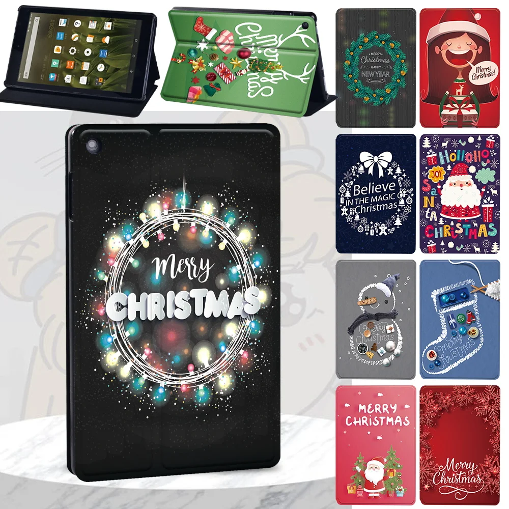 Купить Cover for Fire 7/HD 10 (5th 7th 9th)/HD 8 (6th 7th 8th 10th)/HD 10 (11th Gen)/HD 10 Plus Leather Christmas Pattern Tablet Case за 350рублей