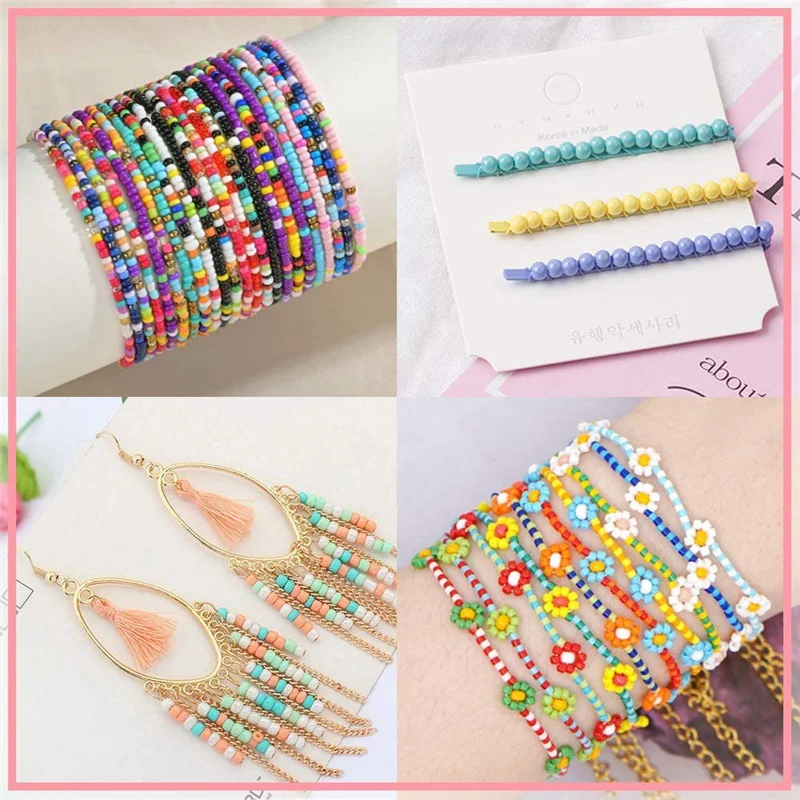 Купить Creative 3mm Seed Beads Kit DIY Bracelet Necklace Accessories Candy Color Small Craft Beads Jewelry Making Set Wholesale Gift за 450рублей