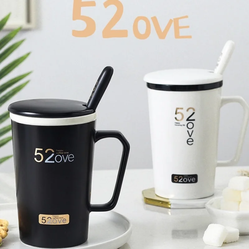Купить Creative Cup Children's Cup 520ins Couple Cup Men's Ceramic Mug Gift Set with Cover and Spoon Simple за 1350рублей