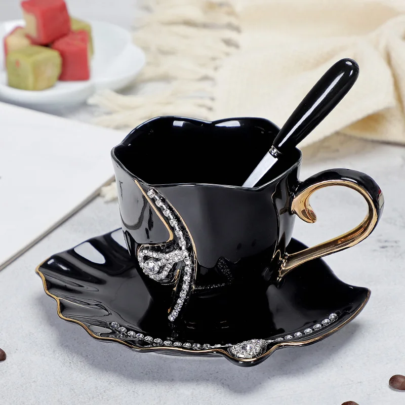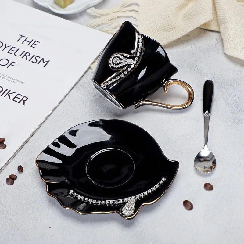 Купить Creative Design Drinkware Ceramic 3D Tea Mugs with Rhinestones Decoration Cups and Saucers Kitchen Utensils Noble за 750рублей