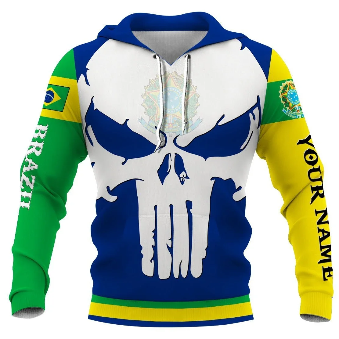 Купить Custom Name Brazil Coat Of Arms Map Flag Skull 3D Print Zipper Hoodie Men Pullover Sweatshirt Hooded Jersey Tracksuits Outwear за 950рублей