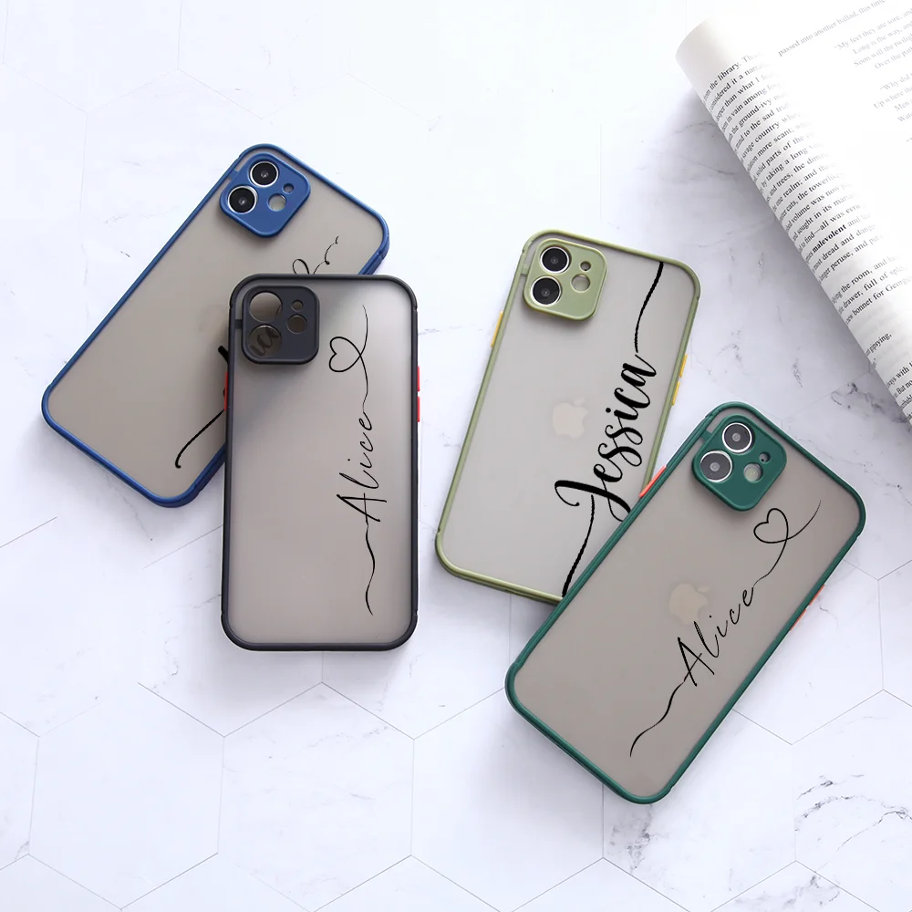 Купить Custom Name PC Matte Case For iPhone 14 11 13 Pro Max Funda 8 7 Plus SE X XR Luxury Silicone Frame Cover For iPhone 12 Coque за 200рублей