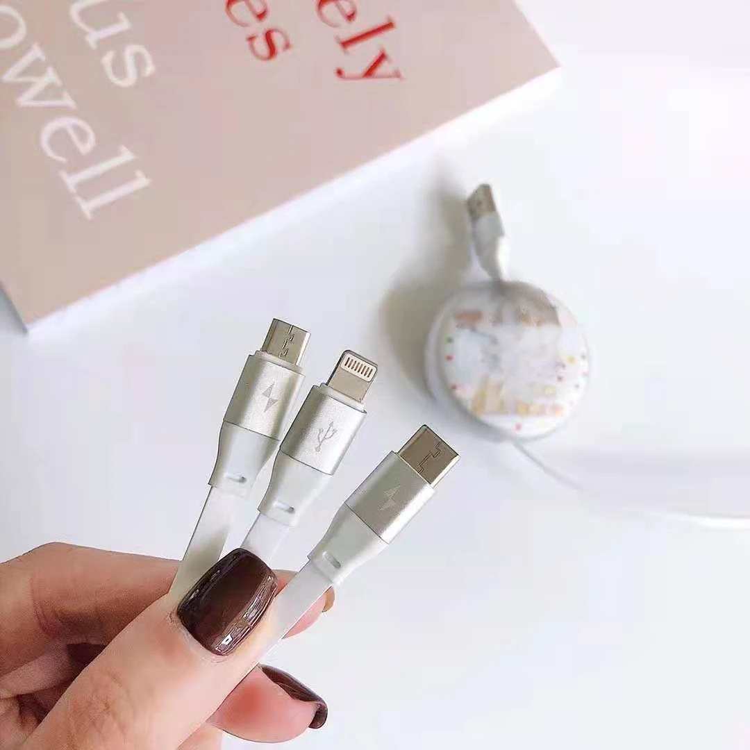 Купить Cute Cartoon Hello Kitty One Drag Three Telescopic Data Cable Suitable for Apple Android Huawei TYPE-C Portable Charging Cable за 550рублей