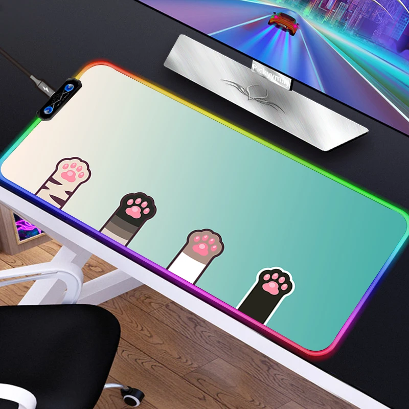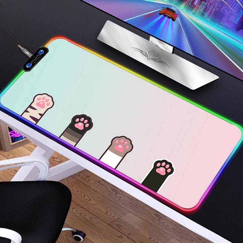 Купить Cute Cat Paw Mouse Pad RGB Pink Soft Large Keyboard Cover Drop Shopping Desk-mat Gaming Desk Kawaii LED Light Mousepad 40x90CM за 800рублей