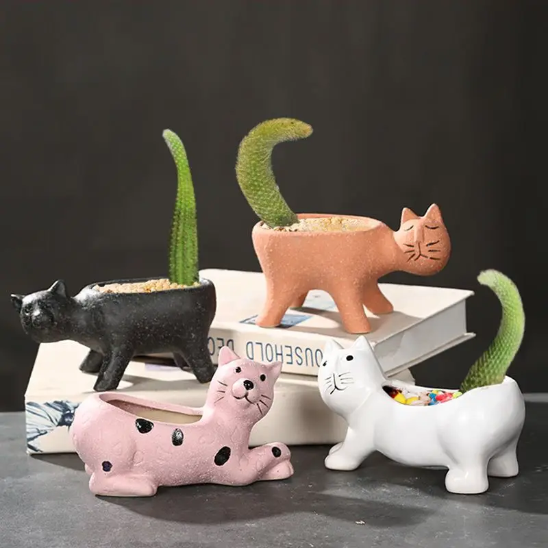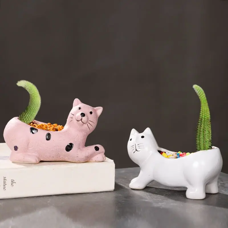 Купить Cute Cat Tail Flower Pot Ceramic Creative Personality Simplicity Cactus Flower Pot Cartoon Animal за 850рублей