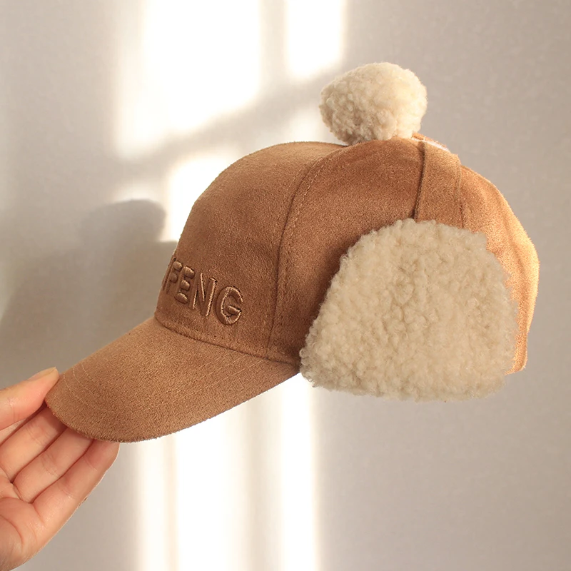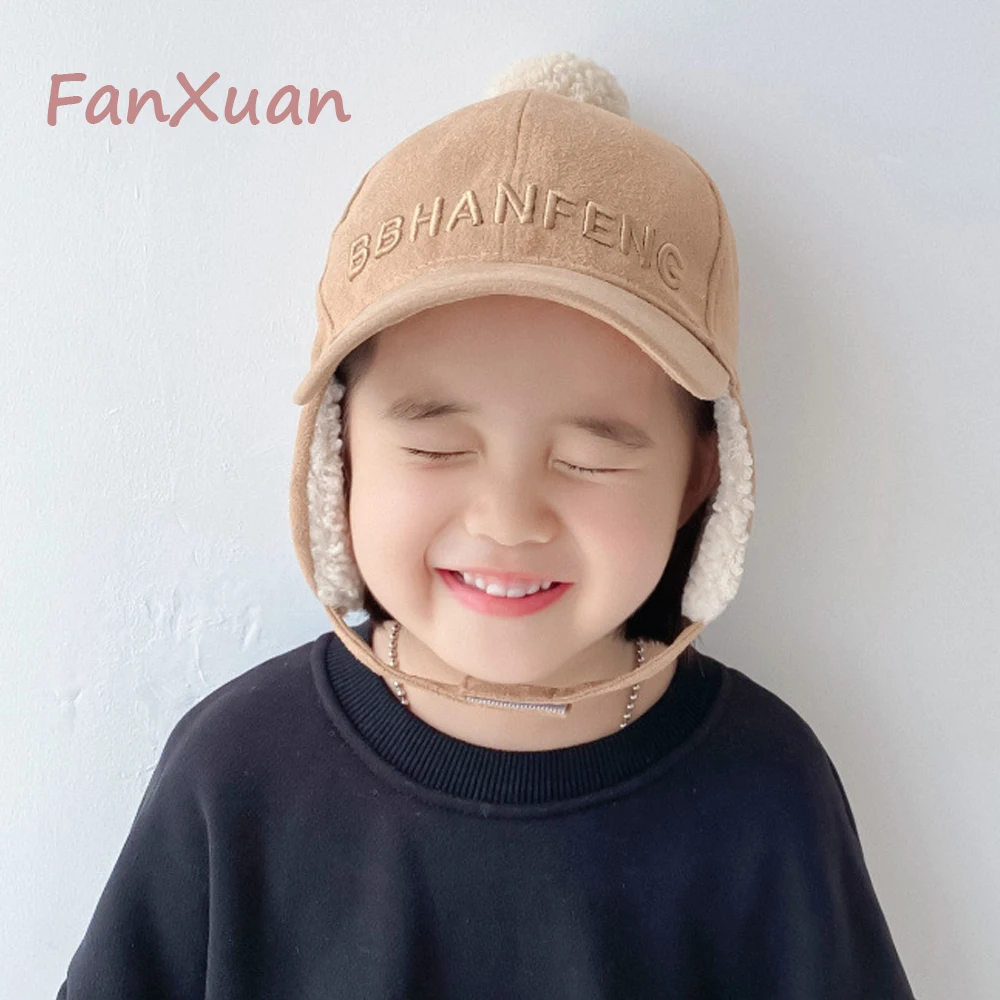 Купить Cute Kids Hat with Earflaps Spring & Fall Children's Hat Boys & Girls Baseball Cap Solid Color Peaked Cap 3-7years Dual-use за 400рублей