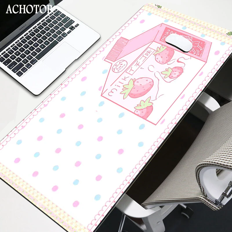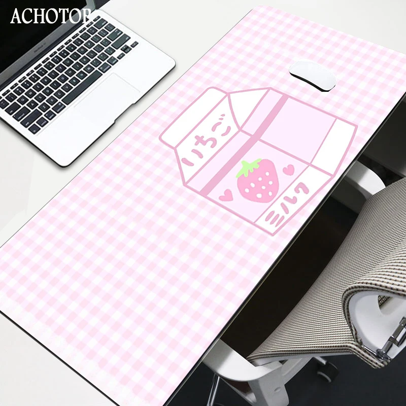 Купить Cute Pink Strawberry Milk Anime Mouse Pad Gamer Desktop Keyboard Carpet Kawaii Gaming Mousepad Best Gift Girlfriend DIY Custom за 500рублей