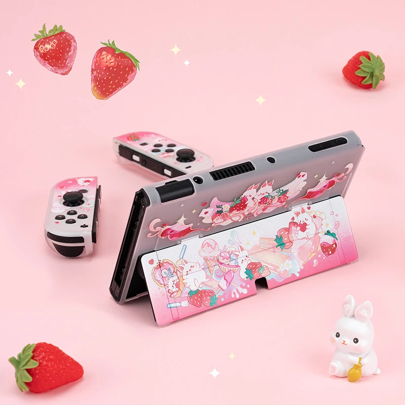 Купить Cute Strawberry Rabbit Case Compatible with Nintendo Switch Oled/Switch Console and Joy-Con Shock-Absorption Protective Cover за 650рублей