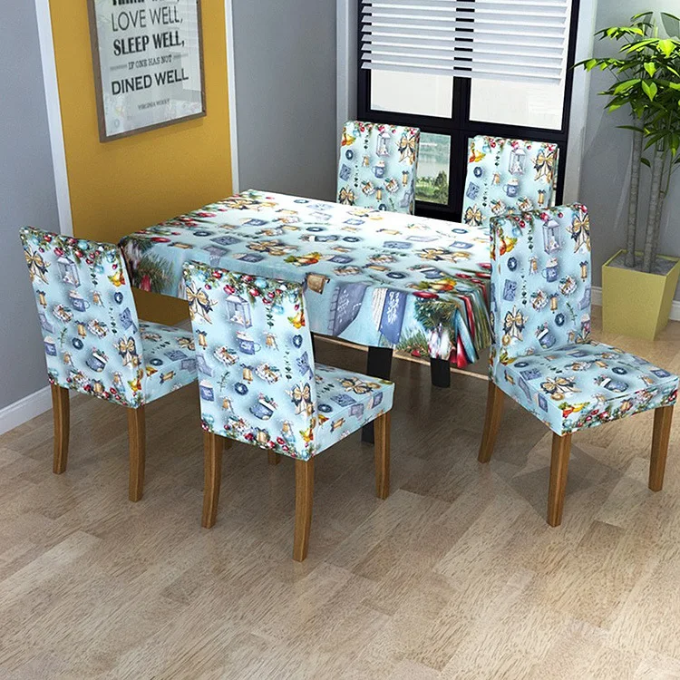 Купить Cyan Christmas Digital Printed Tablecloth Siamese Elastic Chair Cover Household Rectangle Dining Table Cloth Chair Cover за 900рублей