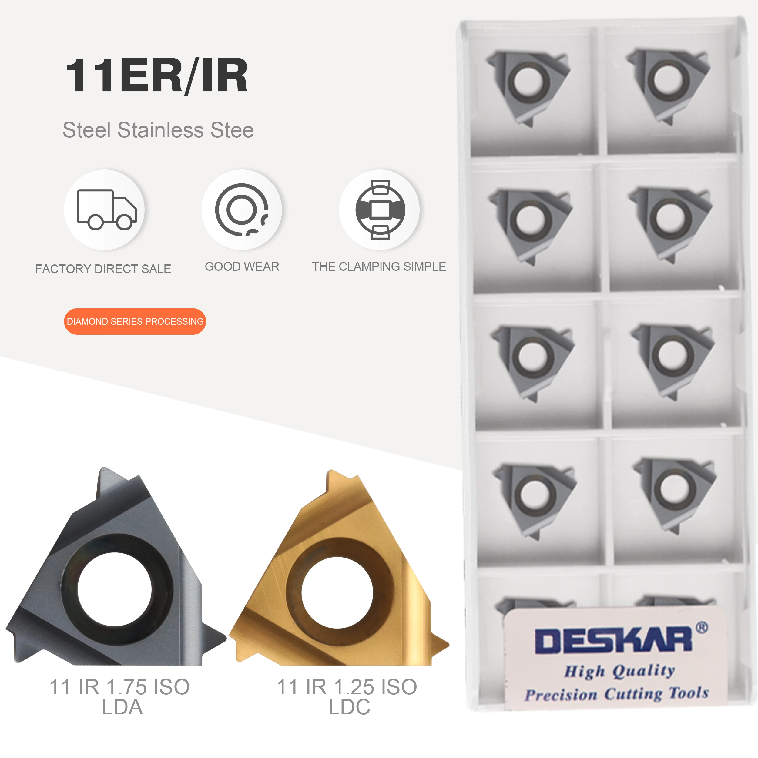 Купить DESKAR 11ER / 11IR 0.5 ISO LDA 0.75 / 1.0 / 1.25 / 1.5 / 1.75 / 2. / 2.5 / 3.0 LDC CNC lathe thread turning tool carbide insert за 400рублей