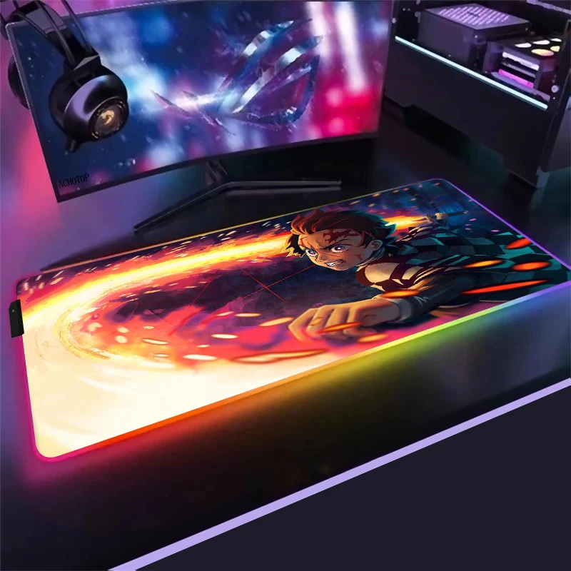 Купить Demon Slayer RGB Mouse Pad Computer Keyboard Carpet Pad Gaming Accessories LED Gamer PC Connected Mat USB Gaming Desk Mousepad за 1450рублей