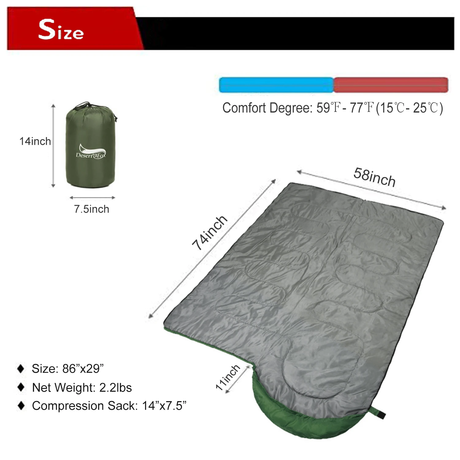 Купить Desert&Fox Compact Sleeping Bag Ultralight Envelope 3 Season Sleeping Bags with Compression Sack for Camping Hiking Travelling за 1050рублей