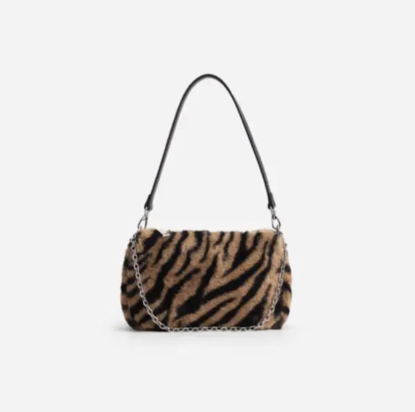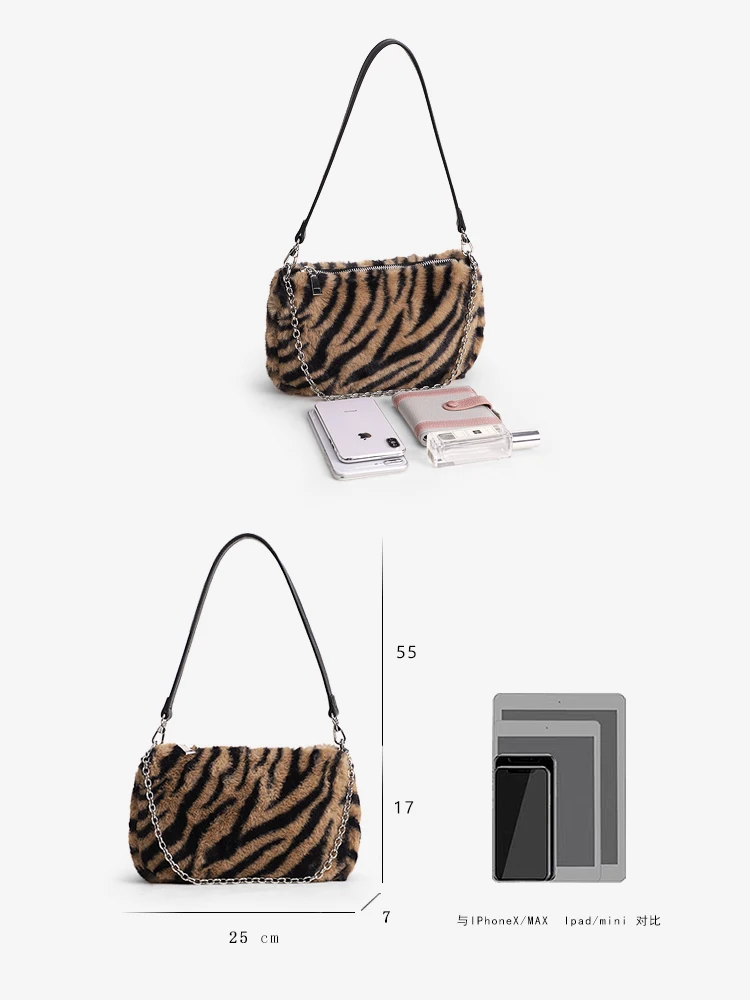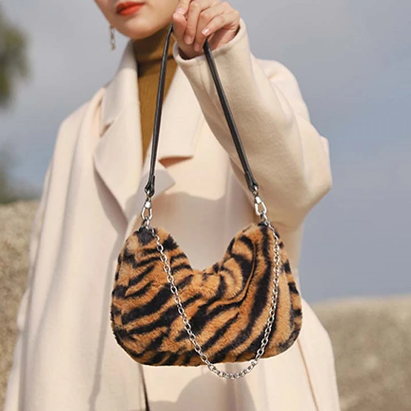 Купить Designer Fur Women Top-handle Bags Fashion Brand Women's Bag Leopard Plush Handbag Chain Bag and Hobos for Lady 2020 Winter Gift за 500рублей