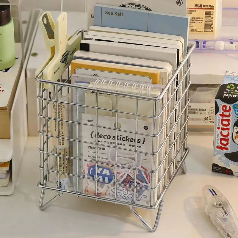 Купить Desktop Iron Pencil Case Cosmetic Storage Box Dormitory Snacks Sticky Tape Notes Sundries Coffee Storage Basket за 800рублей
