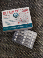 Пьём Детримакс всей семьей уже год . Очень нравится, что он в таблетках . Удобный приём, хорошая доза в 1 таблетке - 1000 единиц витамина Д . Отличная цена . Хватает надолго . И эффект замечательный .