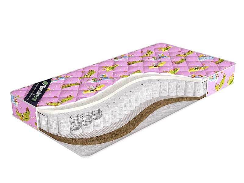 Двусторонний детский матрас на беспружинной основе. В составе — струттофайбер, кокосовая койра, войлок.