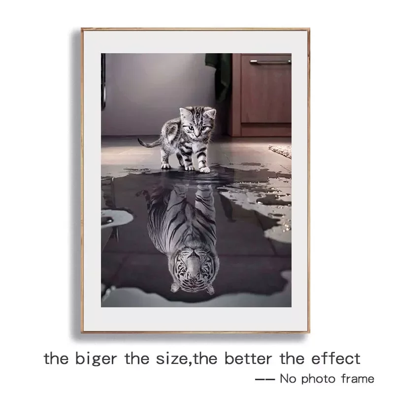 Купить Diamond Painting Cat Reflection Tiger Cross Stitch Full Diamond Embroidery Animal Mosaic Picture of Rhinestones Decor Gift за 350рублей
