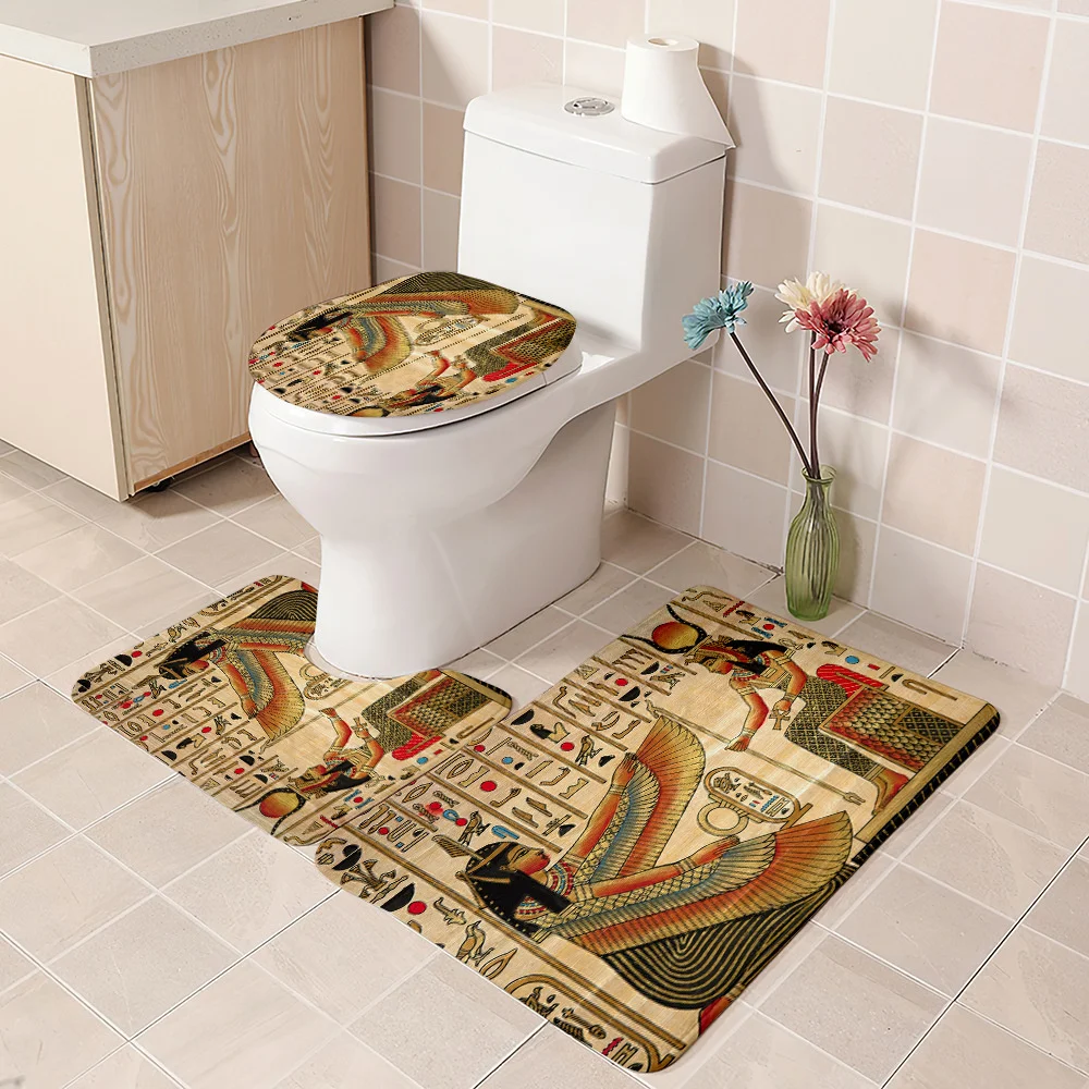 Купить Digital Printing Shower Curtain Set Egyptian Style Decorations For Bathroom Fresco Pharaoh Toilet Cover Set 3 Piece Floor Rugs за 750рублей