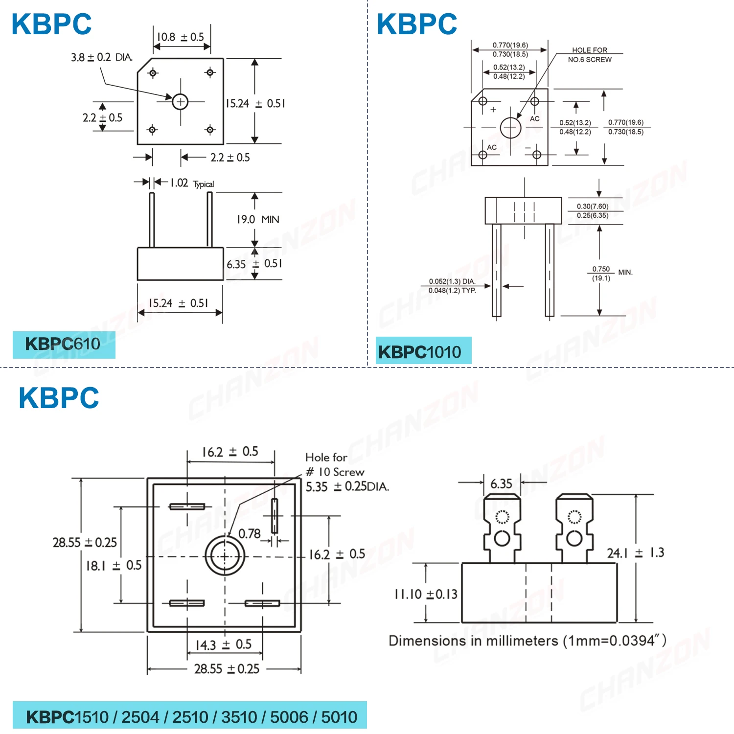 Купить Diode Bridge Rectifier DB107 KBPC610 KBPC1010 KBPC1510 KBPC2504 KBPC2510 KBPC3510 KBPC5006 KBPC5010 1A 6A 10A 15A 25A 35A 50A за 250рублей
