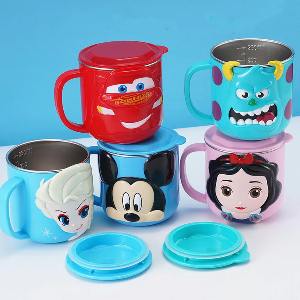 Купить Disney Cups Frozen Elsa Anna Mickey Minnie Milk Cup 3D Cartoon Stainless Steel Cup Kids Cup Mickey Mug birthday Gift за 550рублей