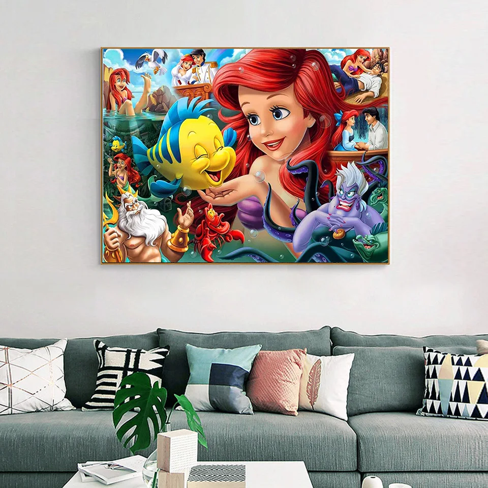 Купить Disney Paint By Number Mermaid Princess Canvas Painting Kits Drawing Acrylic Coloring By Numbers Cartoon Handmade Gift за 300рублей
