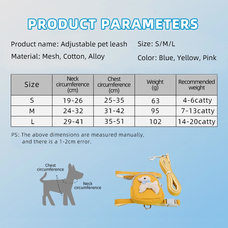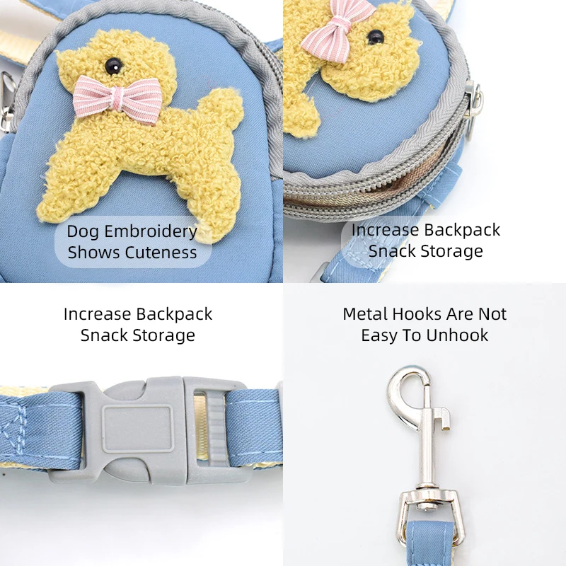 Купить Dog Backpack Leash Cat Items Pet Accessories Adjustable Soft Cute Snack Storage Bag Go Out Portable Traction Rope Small Medium за 650рублей
