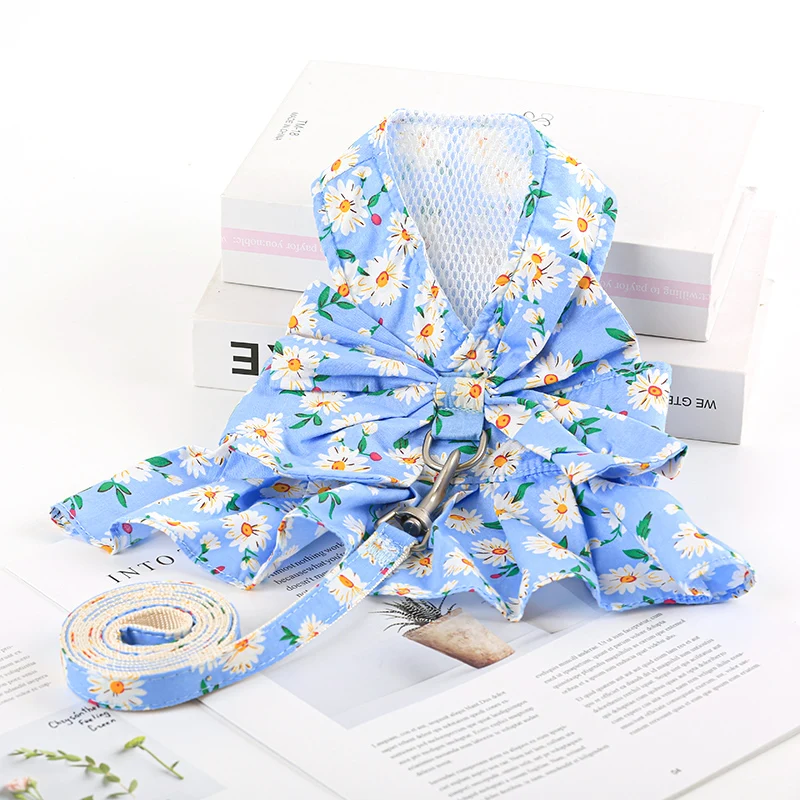 Купить Dog Dress and Leash Set Cute Bowknot Teddy Bichon Cat Harness Vest Spring and Summer Dog Clothes Outdoor Pet Accessoires за 400рублей